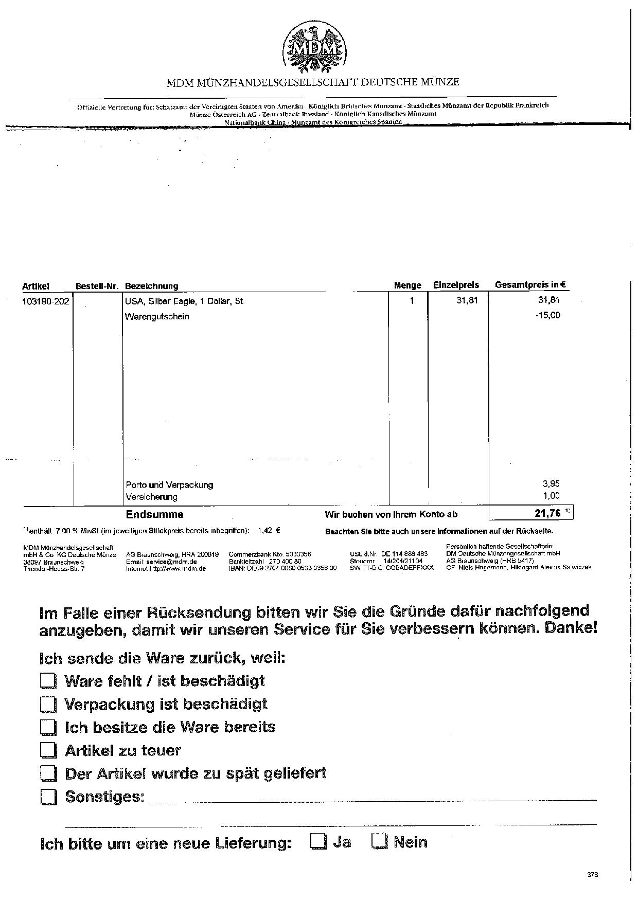 MDM MÜNZHANDELSGESELLSCHAFT MBH & CO.KG