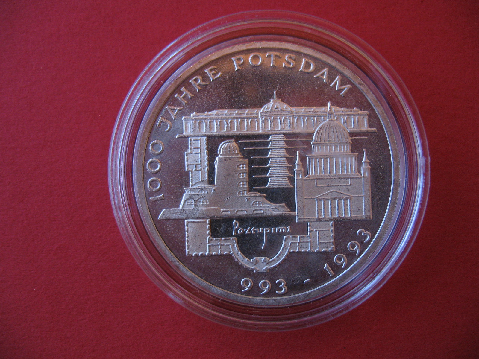 Habe sie von meinem Schwiegersohn bekommen, und der hatte sie seit ewigen Zeiten in einer nicht weichmacherfreien Platikhülle verwahrt. Danach, als ich sie bekam, zusätzlich zu den 10 DM Münzen aus Silber, sah diese Münze natürlich unter aller Sau (siehe Bilder) aus.