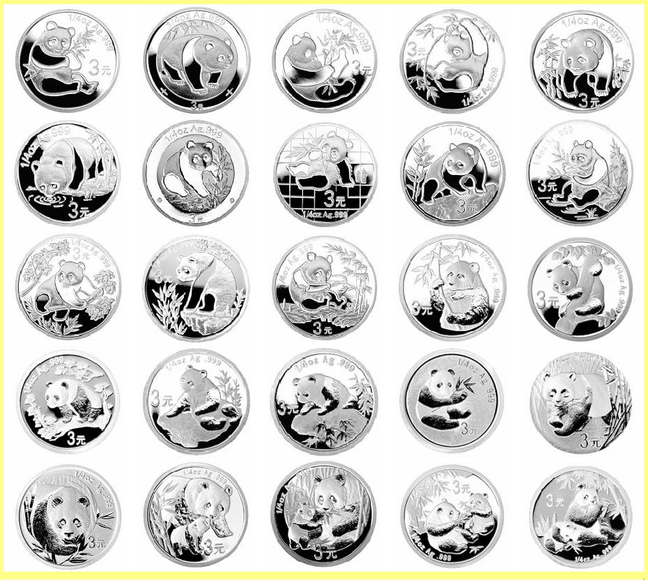 25x Silber Münzen (3 Yuan, 1/4 oz. 999er Silber)