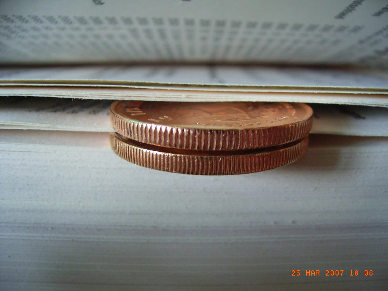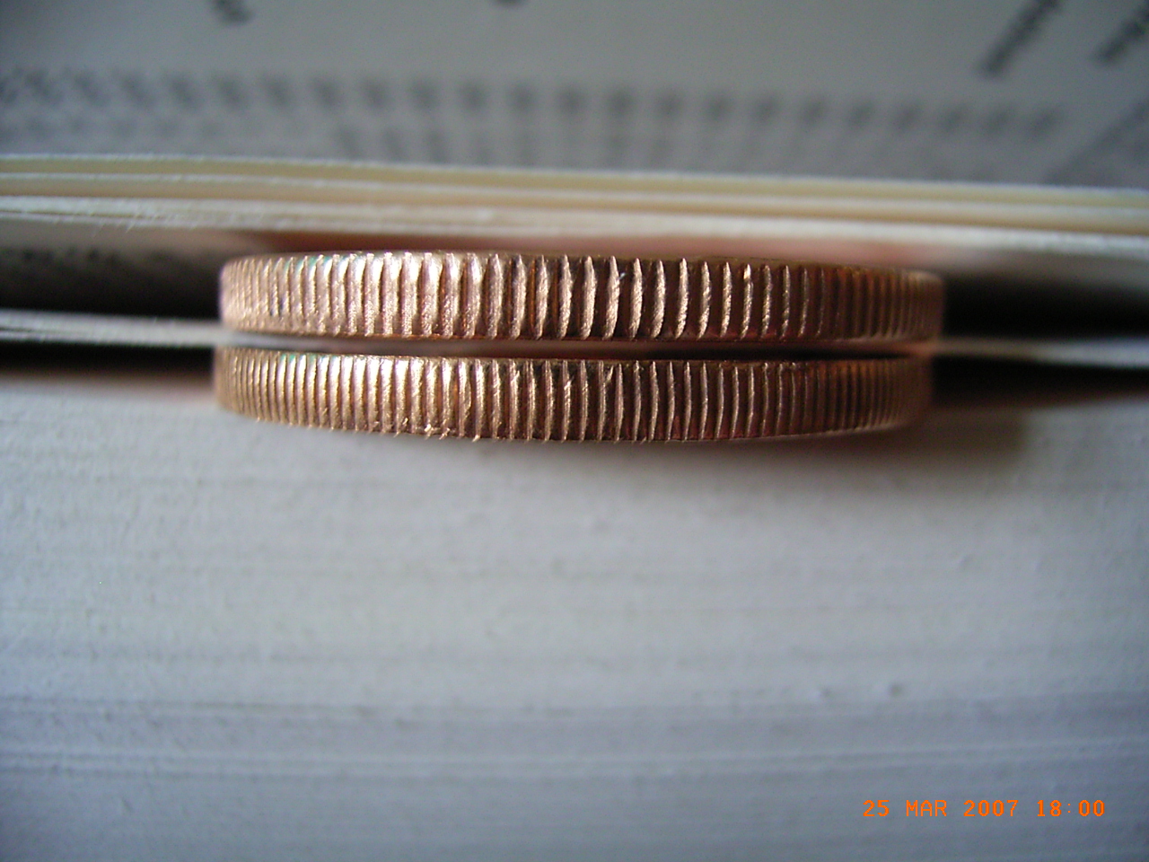 Ich habe von deinem Foto ein Stück "herausgeschnitten" und die Zähne nachgezählt. Die eine Münze hat demnach ca. 1,35x mehr bzw. weniger Zähne als die andere.
