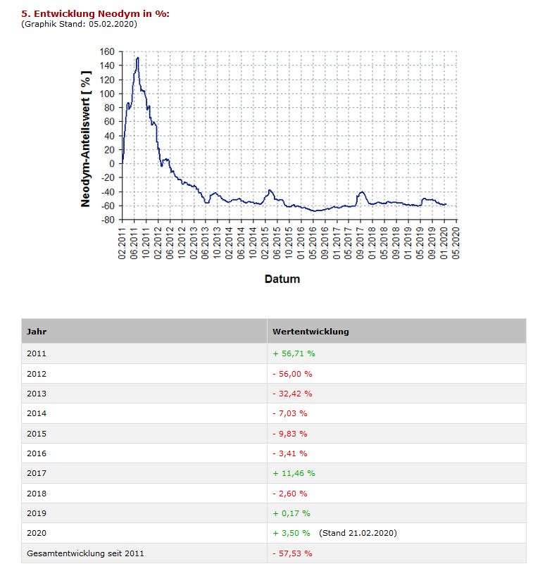 Es gibt bei den seltenen Erden auch sehr grosse Unterschiede, welche seltene Erde für was gebraucht wird und so ist auch die Preisentwicklung. Ob Neodym so interessant ist, ist die Frage. Ein ganz eigenes Feld.