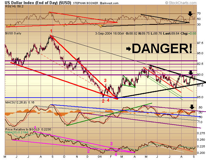 MACD an widerstand angelangt und der thrust ausm RSI bereits sehr hoch, doch naechster schub in richtung 70 zur zeit; je schneller die 70 erreicht wird OHNE dass der Dollar ueber die 90 schliesst desto besser, denn nach der RSI 70 duerfte ein schneller einbruch desselbigen kommen, und der PULLBACK beginnt. .... danach gehts los... womit auch immer: hoch oder runter -