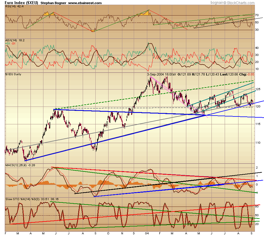 sollte dieses niveau beim euro nicht mehr haltbar sein (USD geht in richtung 91-92 wo der staerkste aller widerstaende sitzt momentan) dann gelten die blauen Unterstuetzunglinien beim Euro. Sollten diese nicht halten, dann gibts erstmal kein halten mehr und bergab.