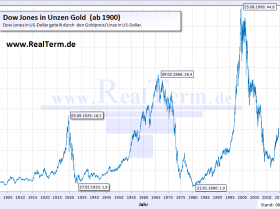 Da sich derzeit nur wenig tut am Verhältnis DAX/Gold, habe ich mal den Dow/Gold aktualisiert.