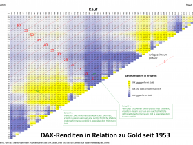 Frage zum DAX/Gold Verhältnis. Sollte man hier auf den DAX-Kurs oder die DAX-Performance schauen ? Wäre der DAX-Kurs nicht besser, da er die Dividenden ausblendet ?