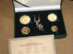Bei den Natura PRESTIGE Sets gibt es eine komplette durchgehende Serie von 1994 bis heute 2010, jedes Jahr mit einem anderen Tier und 4 zusammengehörenden unterschiedlichen Coins der Tierfamilie also 1 oz, 1/2 oz, 1/4 oz und 1/10 oz. Und die Sammlergemeinde ist hier nicht nur in Südafrika sehr groß.