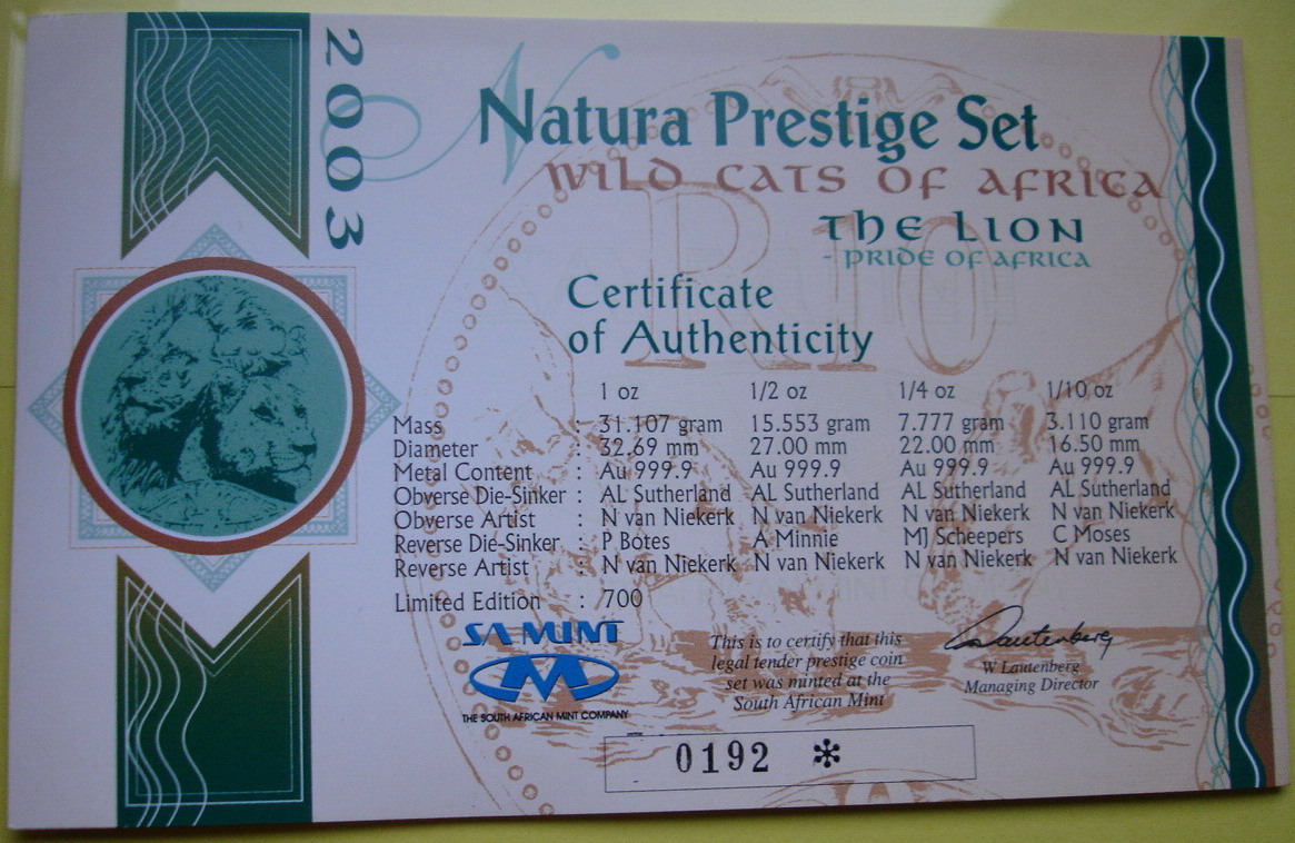 Beim Natura Prestige Set 2003 Lion, gibt es nämlich 2 Zertifikate, zumindest habe ich schon 2 verschiedene gesehen.