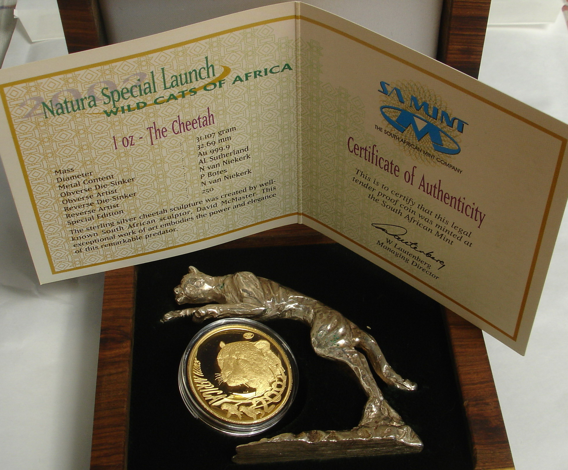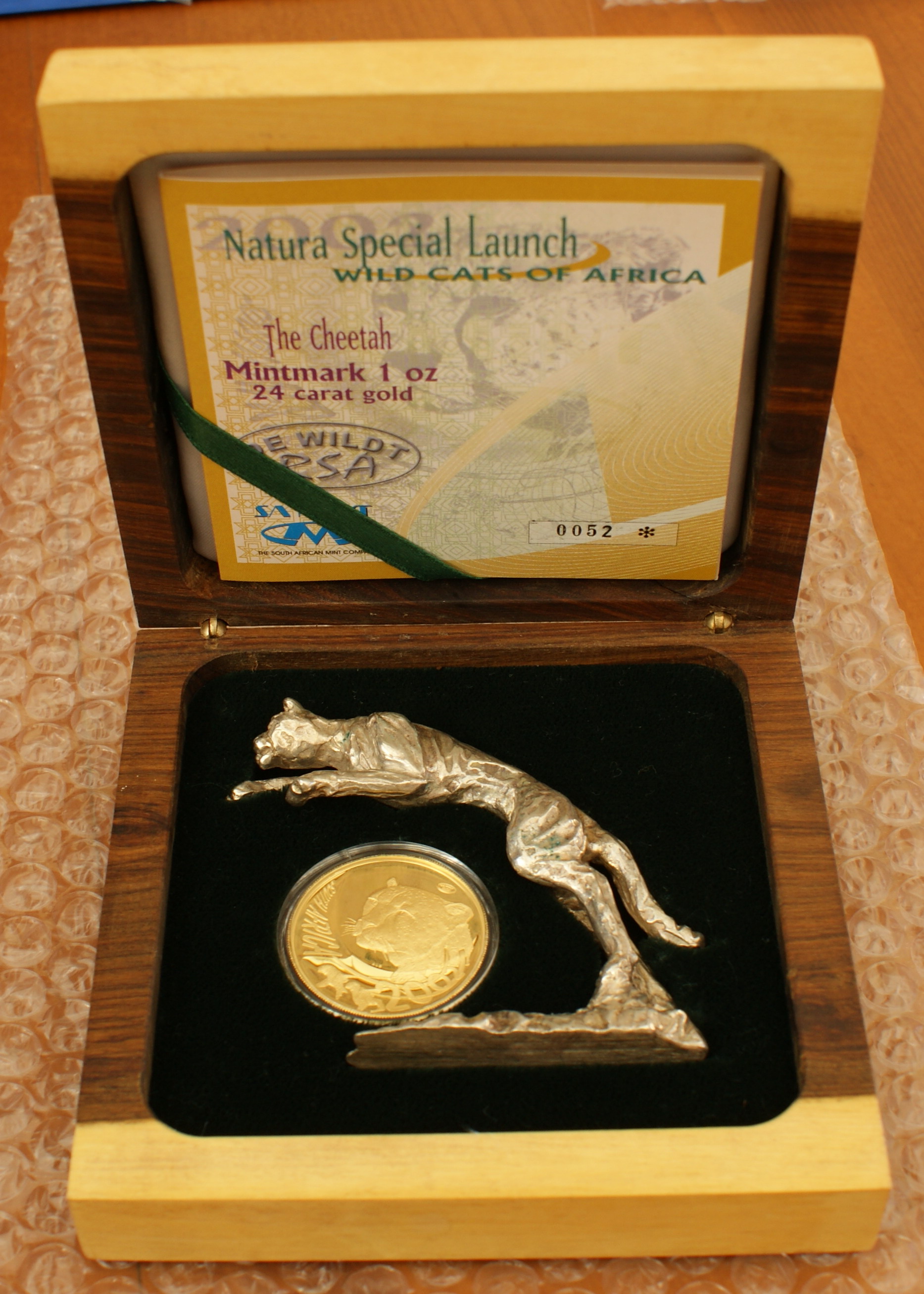 2002 Cheetah, deWildt, Auflage mintmark coin 496, Local Launch Set max. mintage 246, Internatinal Launch Set max. mintage 250
