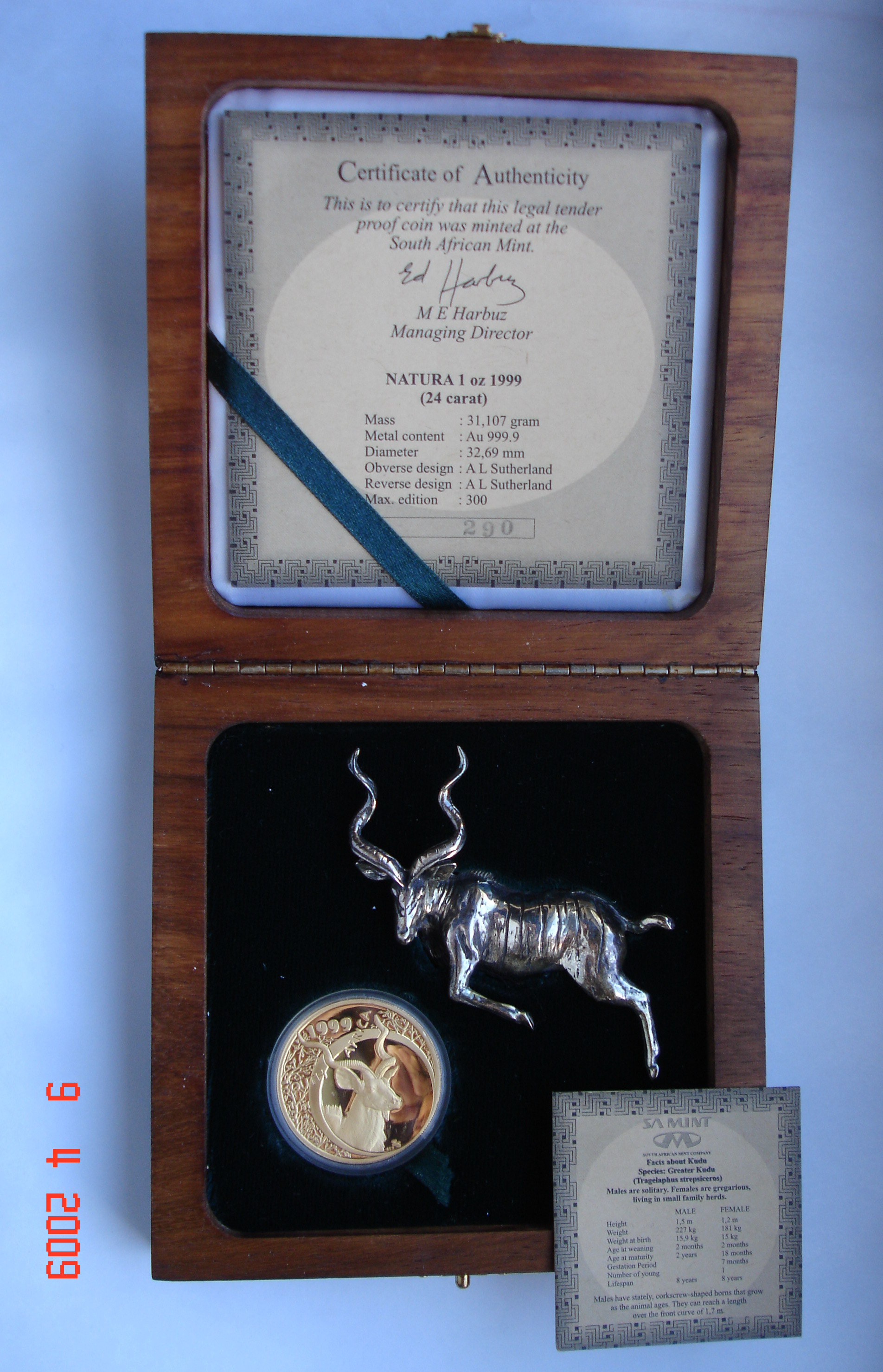 1999 Kudu, SABI SABI, 247 Local Launch Coins, (max. mintage 300) + xxx International Launch Coins, (max. mintage 600)