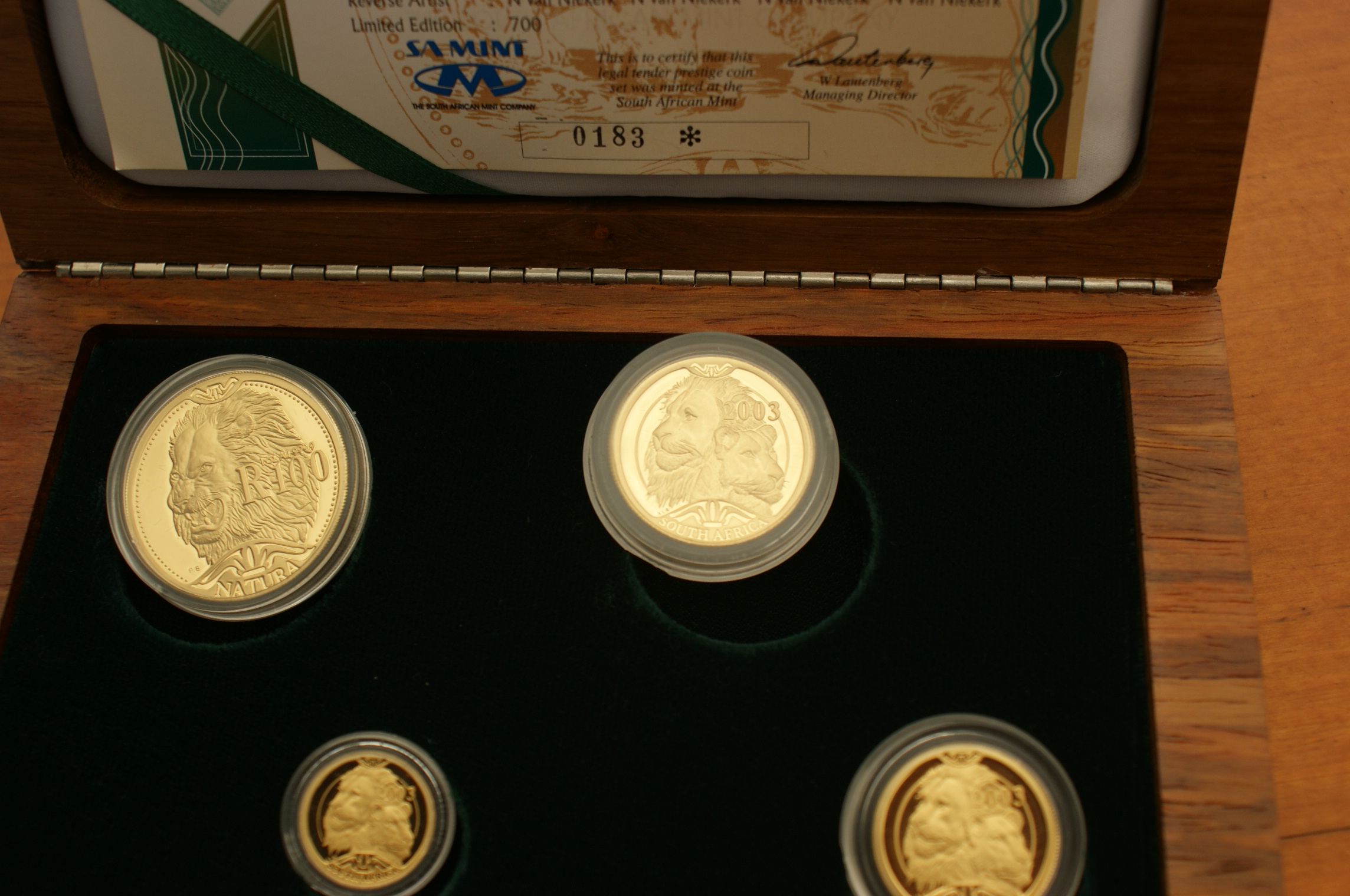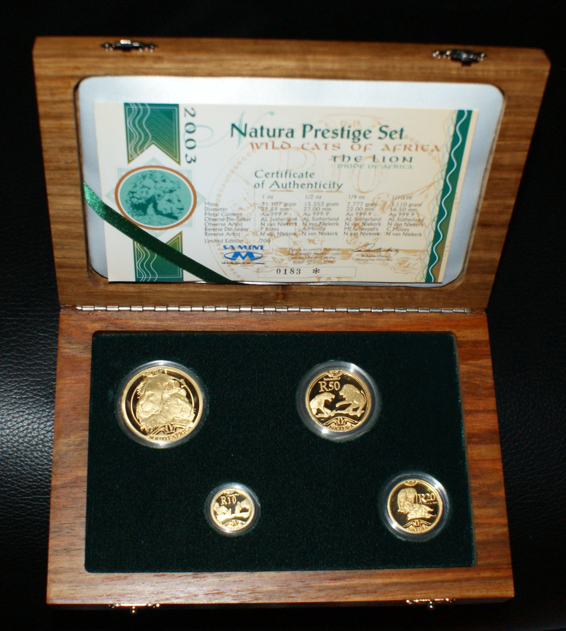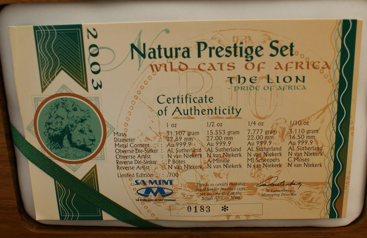 - Natura Prestige Set 2003 Lion in der Wooden Box (max. mintage 700; verkauft/Auflage 698 Sets)