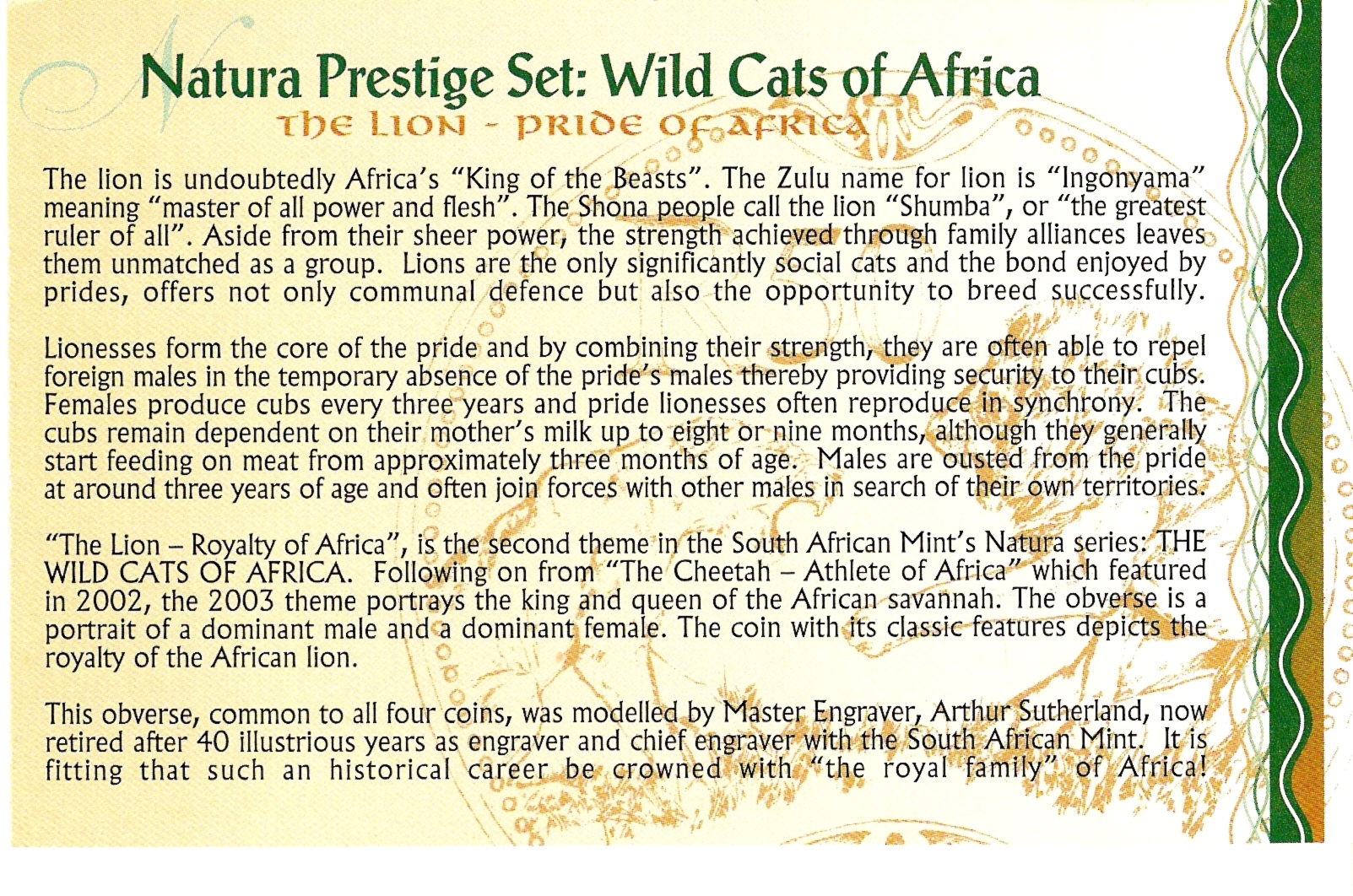- Natura Proof Set 2003 Lion in der Leatherette Box (max. mintage 1.000; verkauft/Auflage 908 Sets)