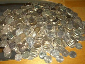 Silbergalerie mit eigenen Bildern von Silbermünzen und Silberbarren