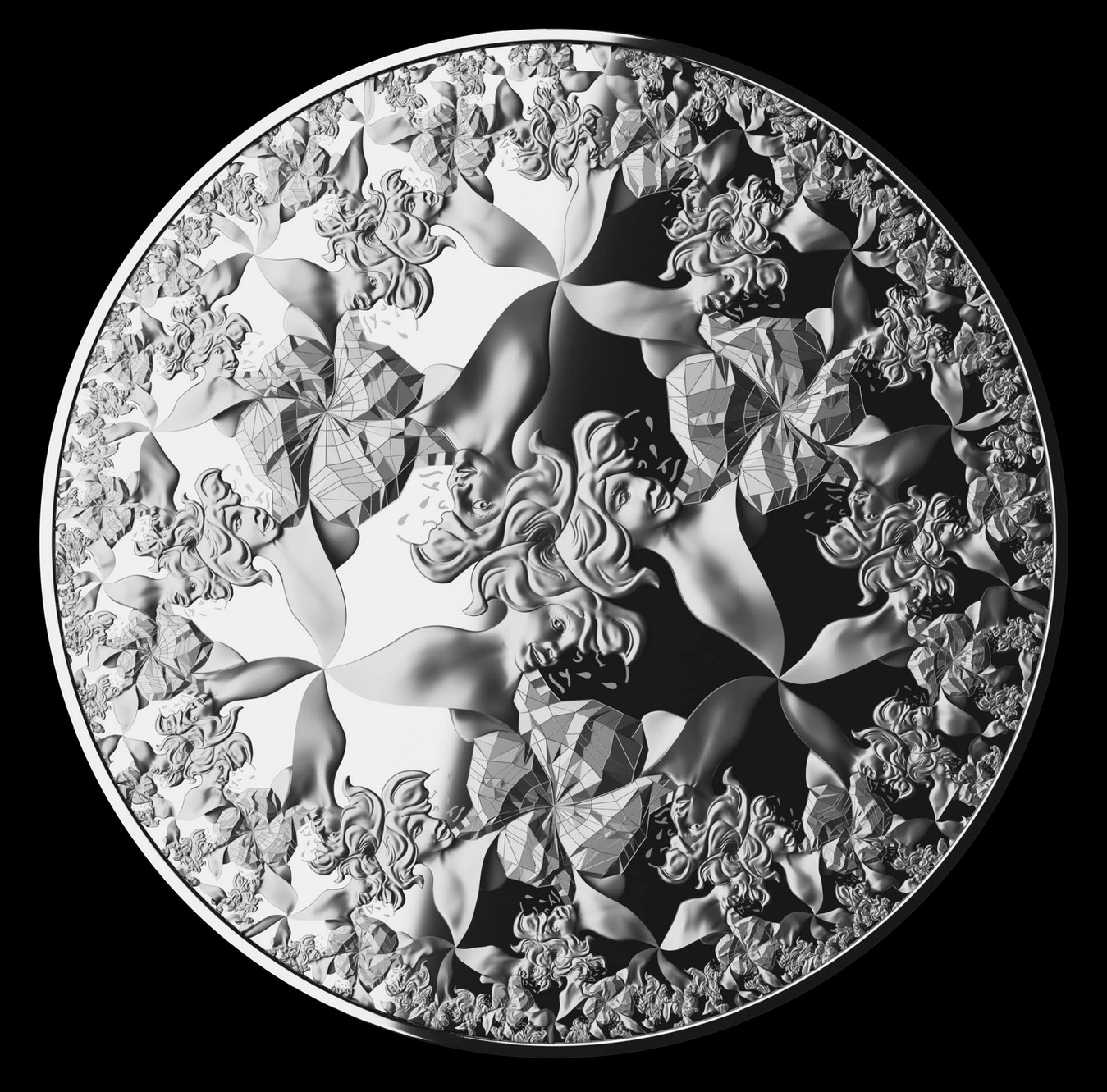 Die mit den mehreren Gesichtern ist gewölbt, sieht man auf dem Foto nicht.