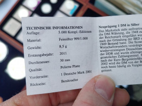 Die Mark Medaille ist aus 999er Feinsilber. Auf der Adlerseite ist am linken Flügel unten die entsprechende Punzierung zu sehen.