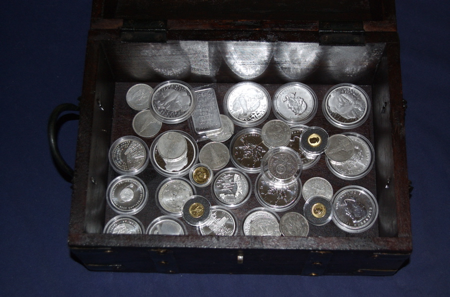 Silbergalerie mit eigenen Bildern von Silbermünzen und Silberbarren