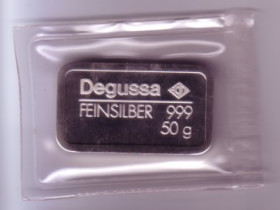 Degussa Feinsilberbarren 1x 50 Gramm, 1x 100 Gramm. Diese sind in letzter Zeit recht rar geworden und werden fast immer ueber den Silberpreis (bei Ebay) gehandelt: