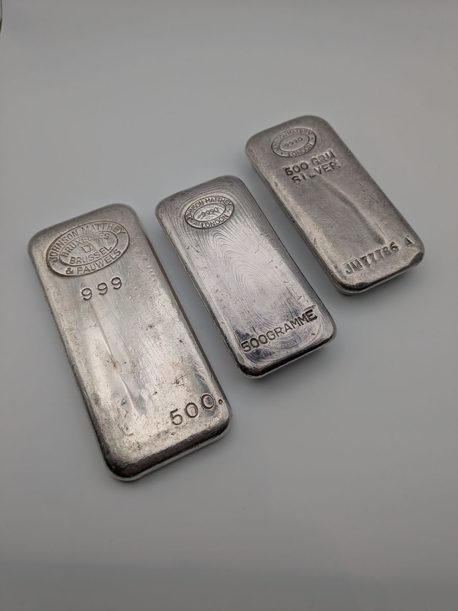 Silbergalerie mit eigenen Bildern von Silbermünzen und Silberbarren