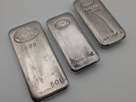 Silbergalerie mit eigenen Bildern von Silbermünzen und Silberbarren