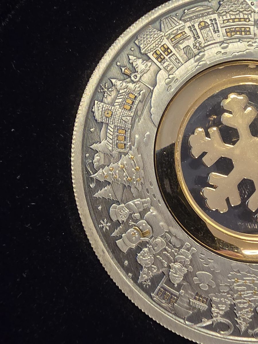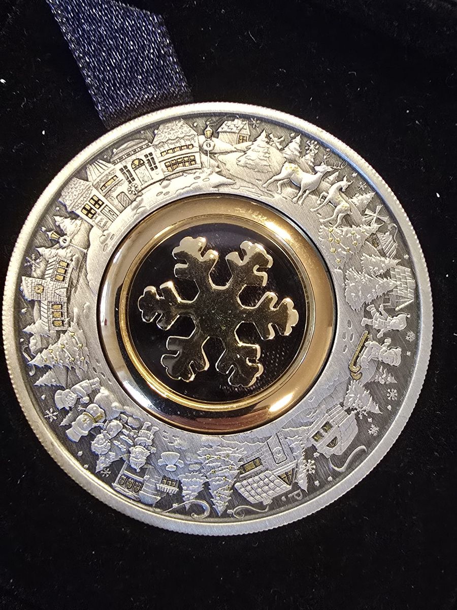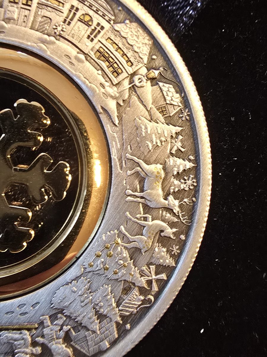 Gerade kam mein Weihnachtsgeschenk an, hier nochmals ein herzliches Dankeschön an ein sehr gutes Forenmitglied! Fotos mit dem Handy bei schlechtem Licht, aber man sieht einige Details. Für mich eine wirklich gelungene Weihnachtsmünze, auch wenn es "nur" Spielzeug ist. Aber immerhin 2 Unzen
