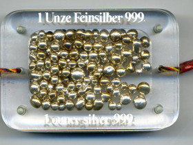 Eine Unze - Inbegriff des Standard-Edelmetallgewichts. Leider in Folie - ich wollte daher eigentlich 2, um einen auch bedenkenlos herausnehmen zu können, aber leider waren die anderen Barren schon vergriffen bei dem damaligen eBay-Schnäppchenpreis!