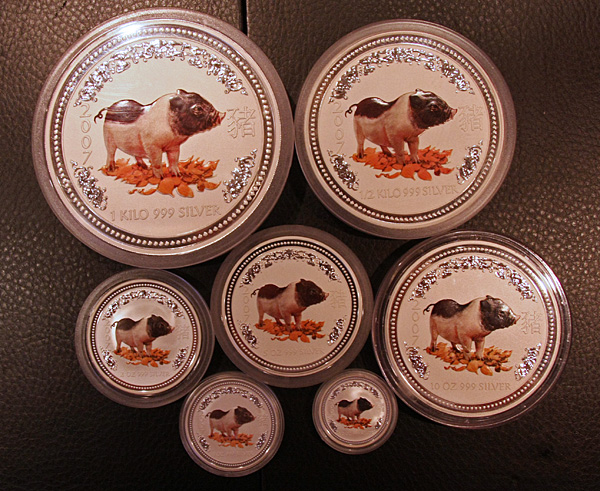 Gold: 1/20 Oz, 1/10 Oz, 1/4 Oz, 1/2 Oz, 1 Oz und 2 OzLink zu Lunar II Maus: Silbergalerie mit eigenen Bildern von Silbermünzen und Silberbarren