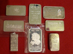 Silbergalerie mit eigenen Bildern von Silbermünzen und Silberbarren