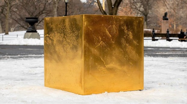 Ein Würfel aus Gold, 186 Kilo schwer. Allerdings wurde da geschummelt, der kann nicht massiv sein. Vielleicht sogar Helium drin ![]()