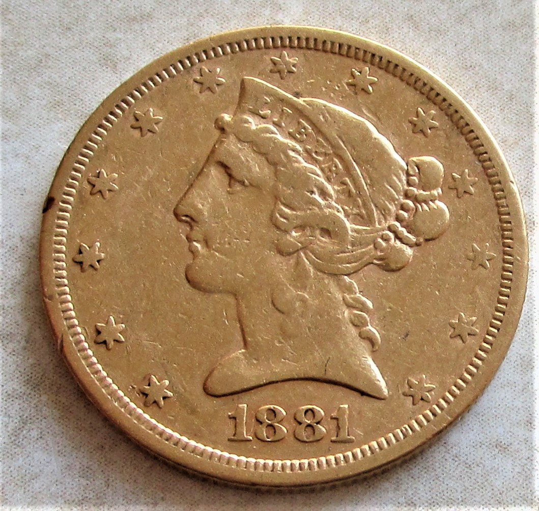 so wie auch 1 Sovereign (1 Pfund) oder 5 Dollar (ungefähr)