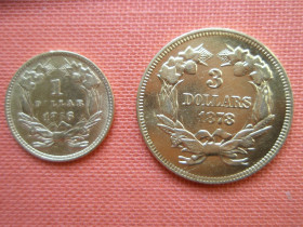 Es handelt sich bei den beiden Münzen um ein seltenes DREI DOLLAR Stück