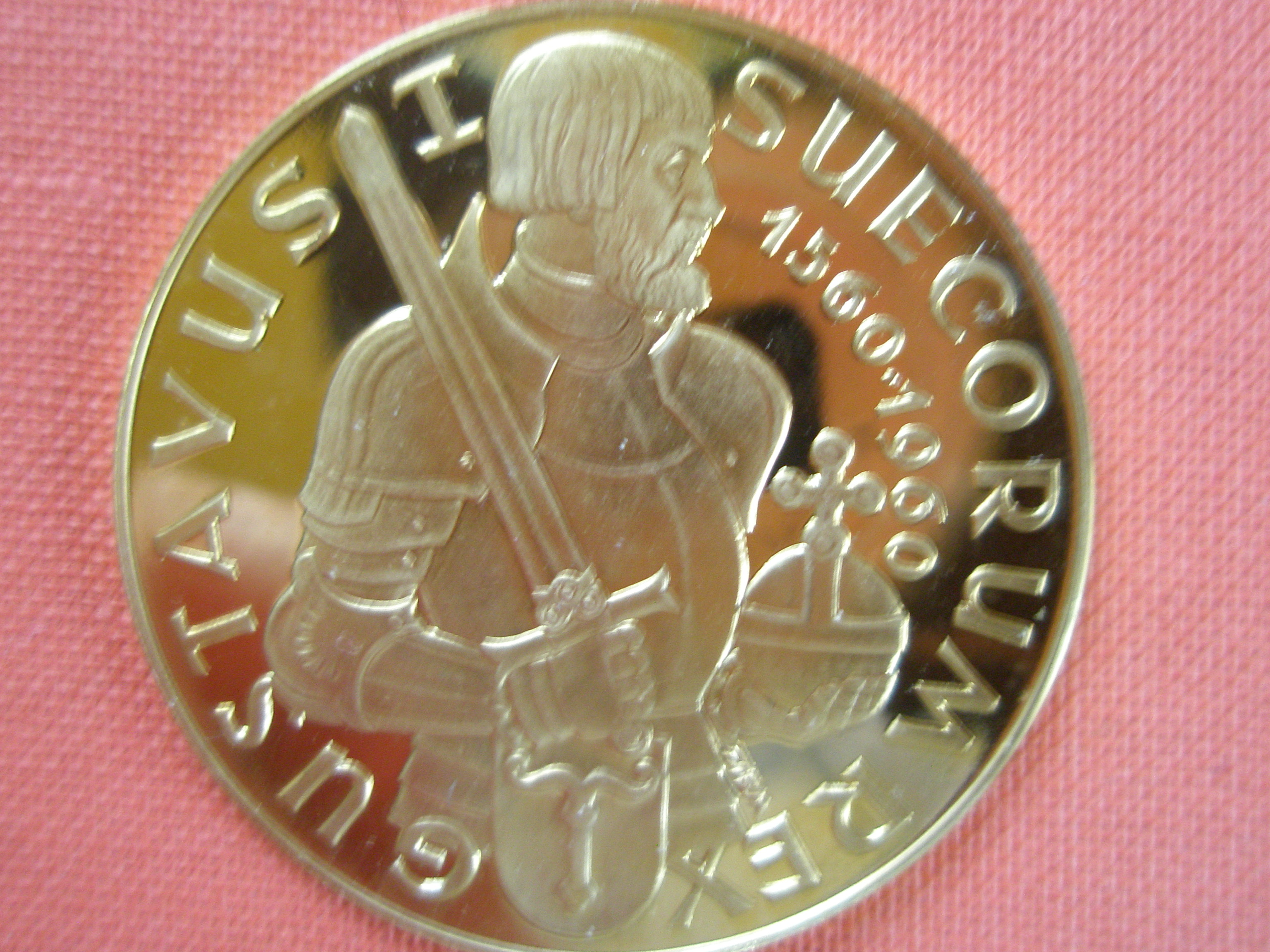 Dieses Goldstück mit dem "Nennwert" von V (5) Dukaten zeigt den ersten König von Schweden