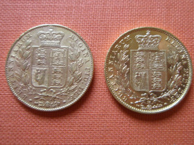 • Das erste sind zwei Sovereign von Victoria Jung mit Wappen, eine von 1846 London und die