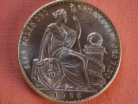 Die zweite Münze vom gleichen Anbieter ist die 100 (Cien) Soles aus Peru. Mit Jahreszahl laut