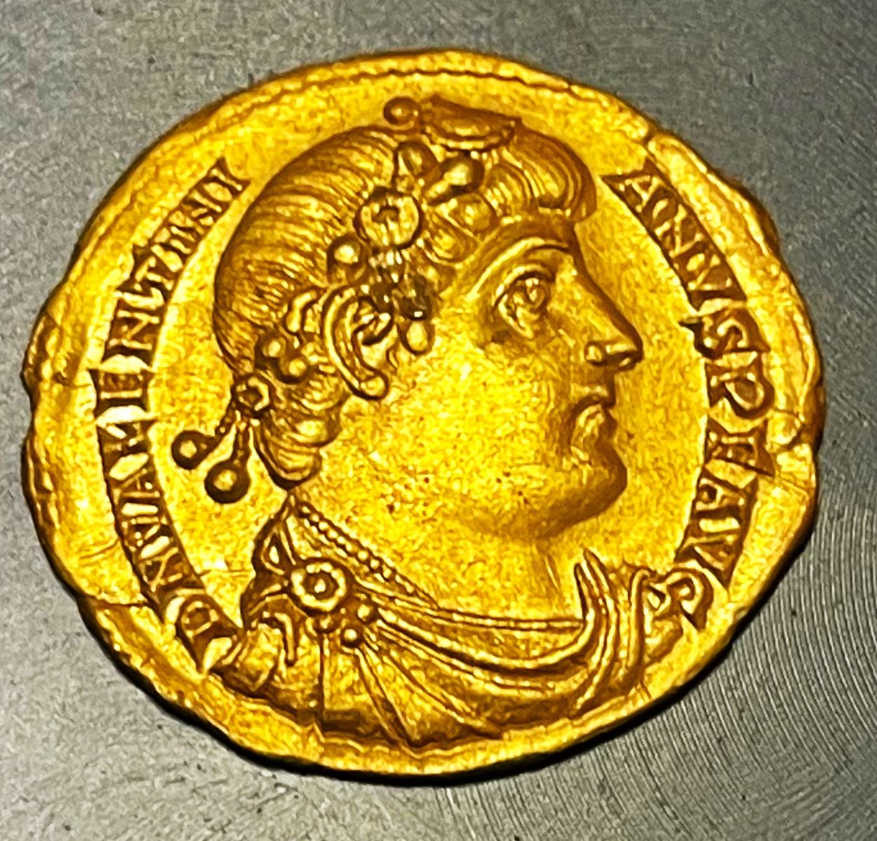 Kaiser Valentinianus I aus der Zeit von 364 bis 375 AD, geprägt in Trier ? . Das zeigt