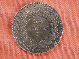 Es handelt sich um eine 24 Livre Goldmünze des Jahres L'An II (1793 ?) mit 916/000 Legierung