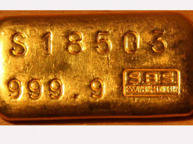 Ein alter 100-g- SBS Goldbarren gegossen -