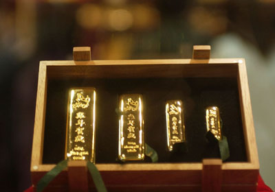 links: 25 gramm Barren aus China zur Erinnerung an Chinas ersten Mond-Satelliten Chang'e vom Oktober 2007