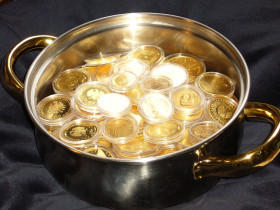 Einige frisch erstandene Goldstücke, mal fotografiert, bevor sie auf den großen Haufen im Geldspeicher geschüttet werden...