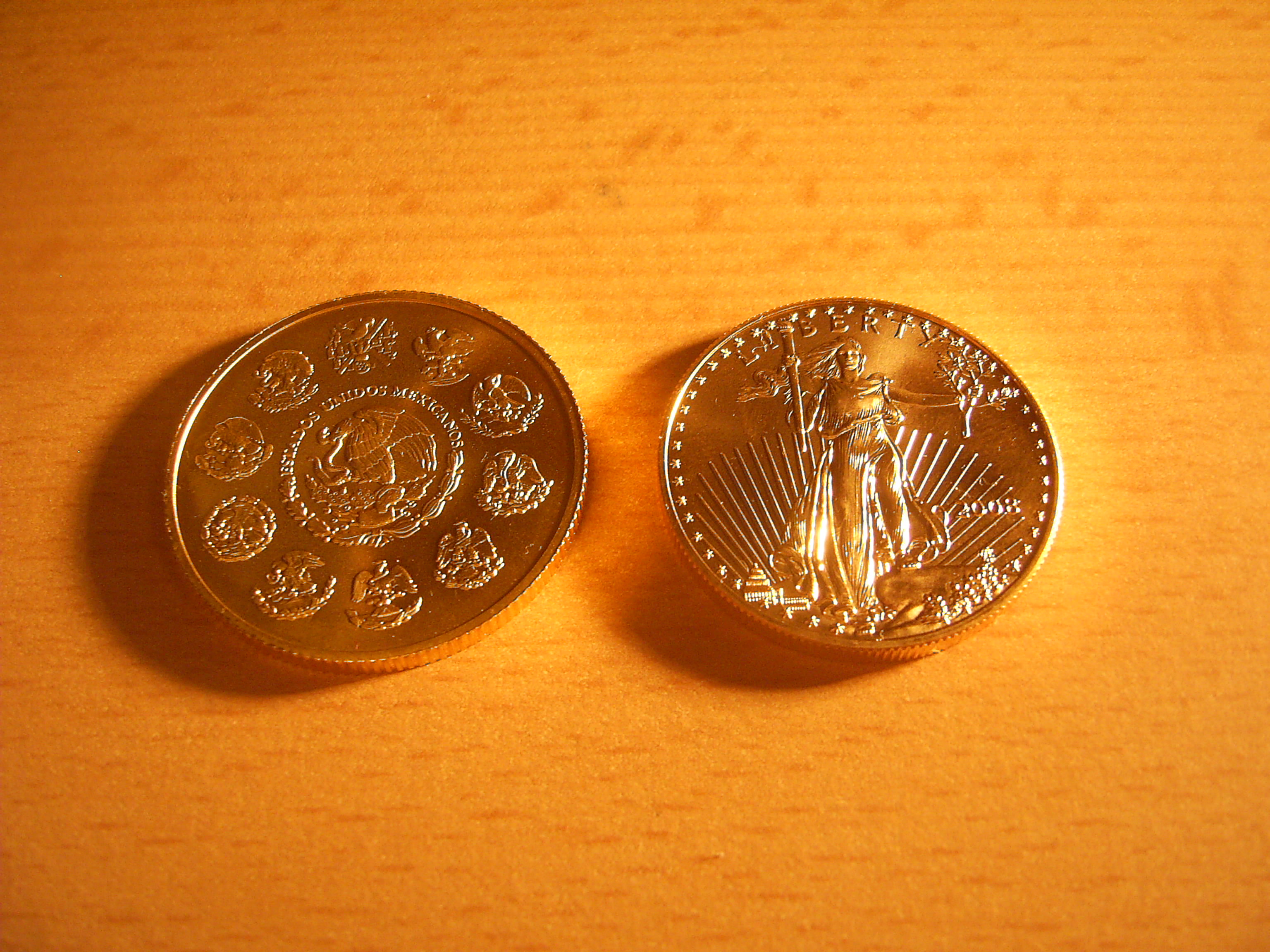 Und wo wir schon beim Golde sind... Hier mal ein Foto, auf dem verschiedene 1-Unzen-Stücke zusammen kommen. Ein bisschen verspielt, aber mir macht’s Spaß.