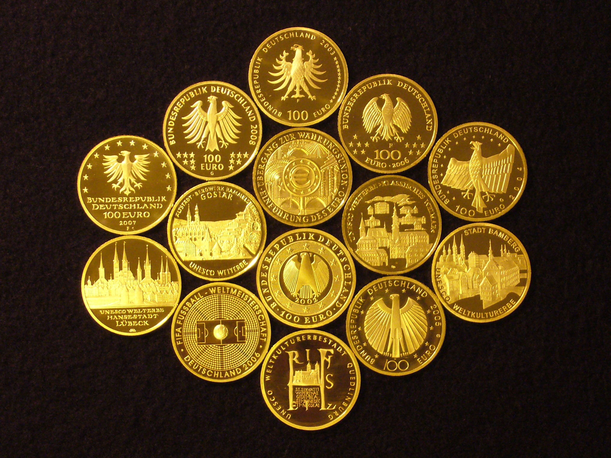 Hier mal drei Bilder von den deutschen Goldeuros. Sieht auch dann noch schön aus, wenn der Goldkurs von Phantasie-Zertifikaten gedrückt wird. Lasst Euch nicht unterkriegen, Goldbugs... Ihr seid die Hoffnung!