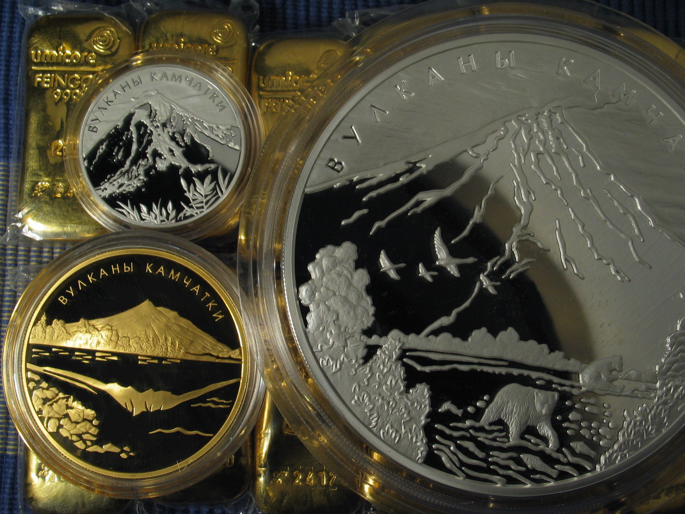 die Vulkane von Kamchatka, neueste Russland Ausgaben, die goldene 5 Unzen und 250ger Auflage.