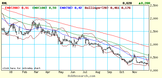 Our Comments: Some folks appear to be "selling on news" (perhaps some earlier Mena shareholders, are sitting on high returns), but make no mistake; there is nothing bad about these results. The highlights above perhaps didn't help any by failing to mention that the company hit several very high grade intercepts, including 71.25 g/t gold over three meters, and two intercepts near 50 g/t over two meters--those are thick enough to mine underground with little mining dilution. And it's also significant that RML hit in every hole. RML hasn't taken off for us yet, but it is producing very positive results so--barring a political torpedo from out of the dark--we think the selling will dry up at some point and the share price will head north. Sharply.