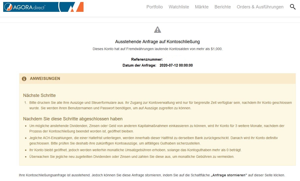 Kurzfazit: "Broker" wie AGORA oder LYNX sind quasi nur Vertriebspartner, die die Softwareplattform von IB nutzen. Wie es juristisch somit im Crashfall aussieht, kann ich mir gut vorstellen. Dann hast halt einen Vertrag mit Lynx, Pech gehabt...Nun wollte ich mein Konto bei Agora kündigen - das geht ähnlich leicht, wie bei einem Buchklub....