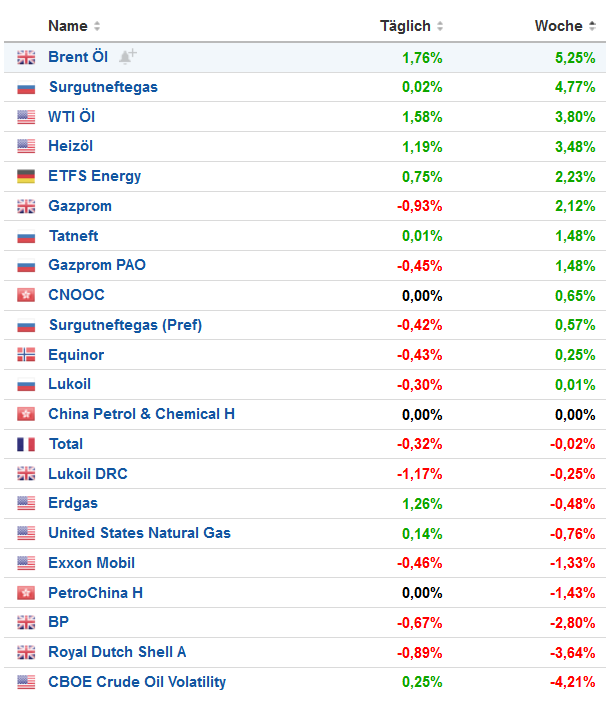 • Die Energieaktien ziehen nicht mit. ETFs bzw. Hebelzertifikate auf Öl bzw. Gas sind sind zurzeit besser.