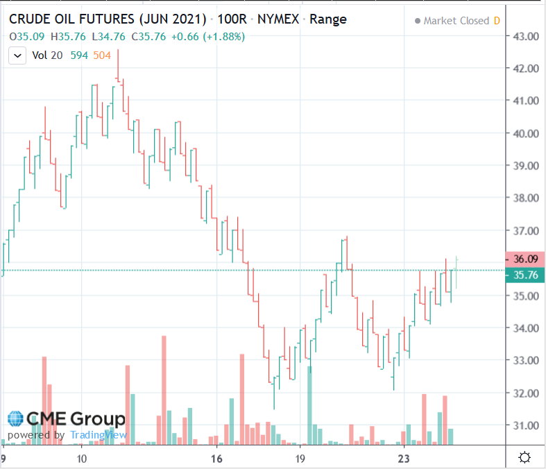 Mittelfristig geht es ziemlich sicher nach oben - es sind Billionen $$ Pakete verabschiedet um die Wirtschaft zu stärken. Das dürfte mittelfristig einen positiven Impact auf den Ölpreis haben, sei es durch Inflation, oder höhere Nachfrage. Eine Auseinandersetzung mit dem Iran ist sicherlich auch nur eine Frage der Zeit.