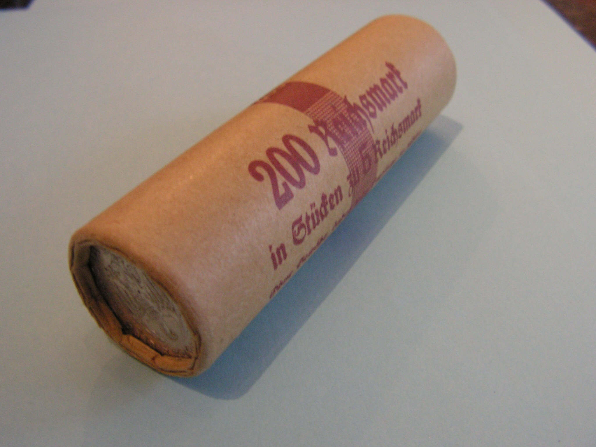 Zum Drucken des 2 RM-Rollenpapiers hab ich Versandtaschen aus Recyclingpapier genommen, das etwas schon etwas dunkler ist und so dem Original nahekommt... Das dunkelt mit der Zeit noch etwas nach...