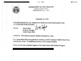 Wer erwägt, einen Proof Buffalo 2010 direkt zu bestellen, sollte nicht mehr lange warten: Sie sind bei der USMint wieder relativ günstig. Mit einer Preiserhöhung ist zu rechnen.