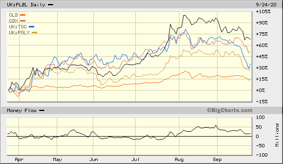 Die Goldminen Rußlands in letzter Zeit schwächelnd, auffallend die Riesen PLZL und POLY, insbes. auch die kleine TSG.
