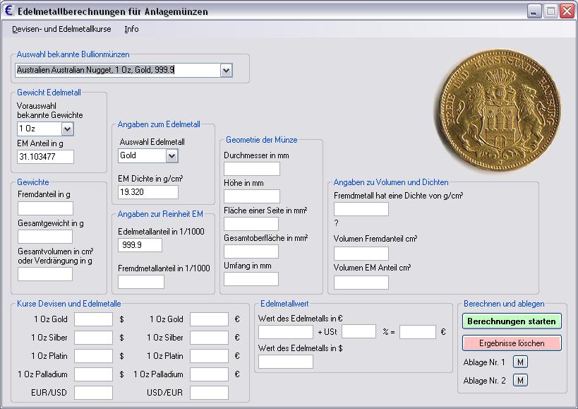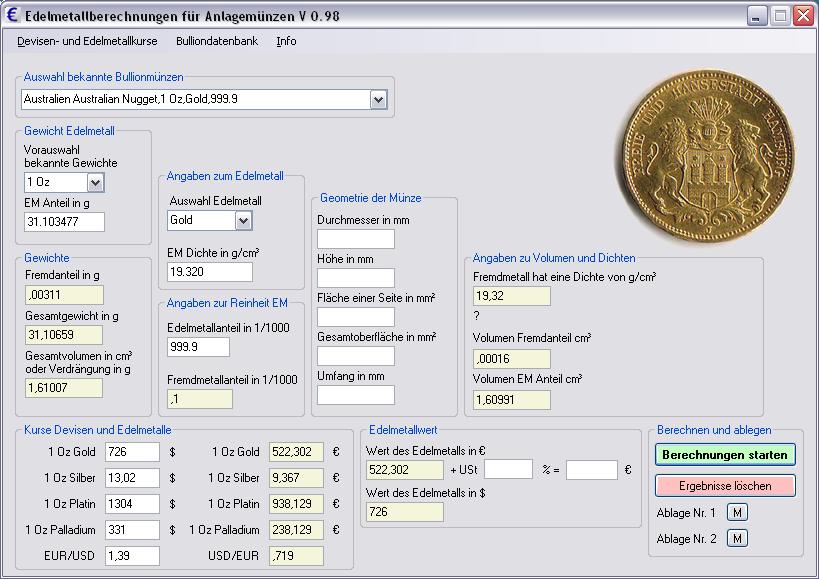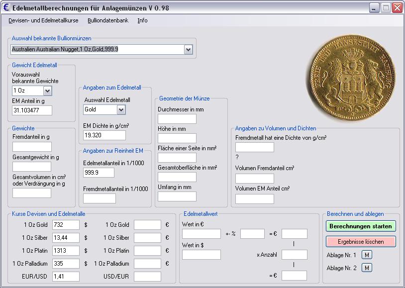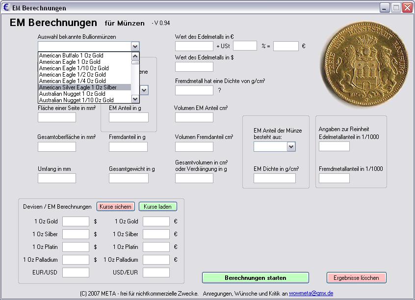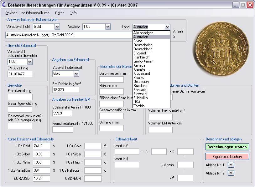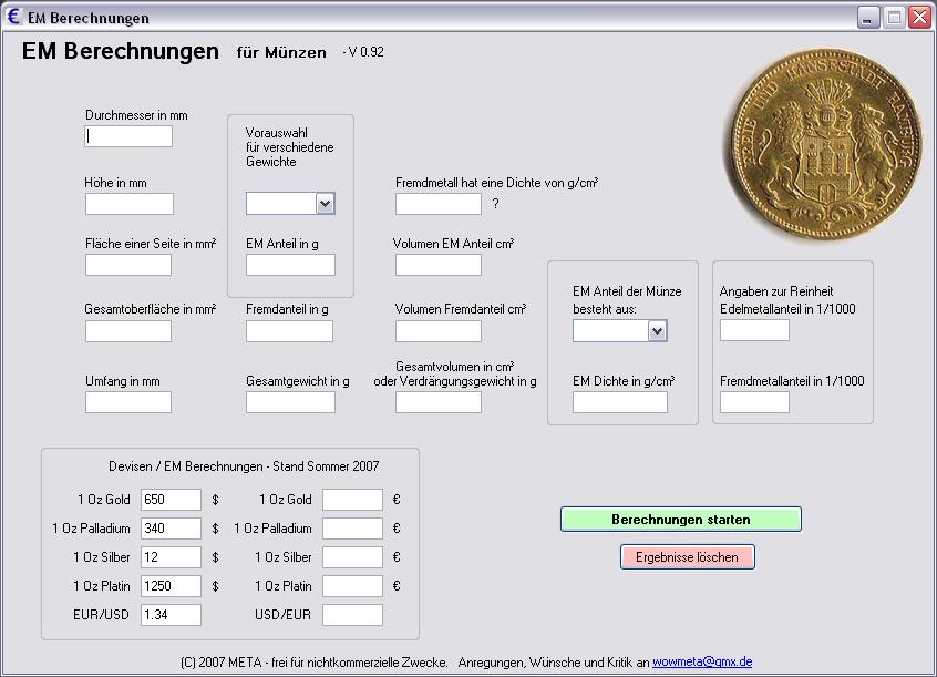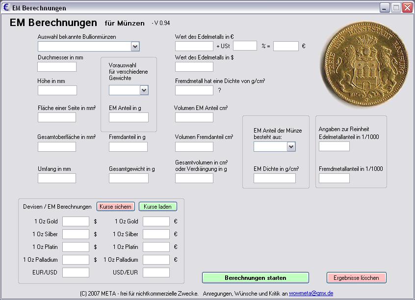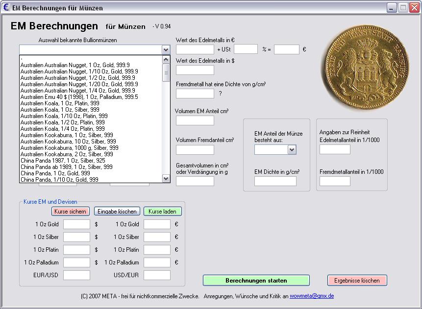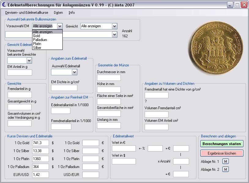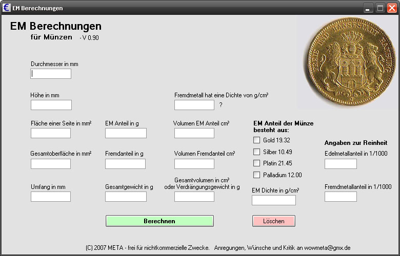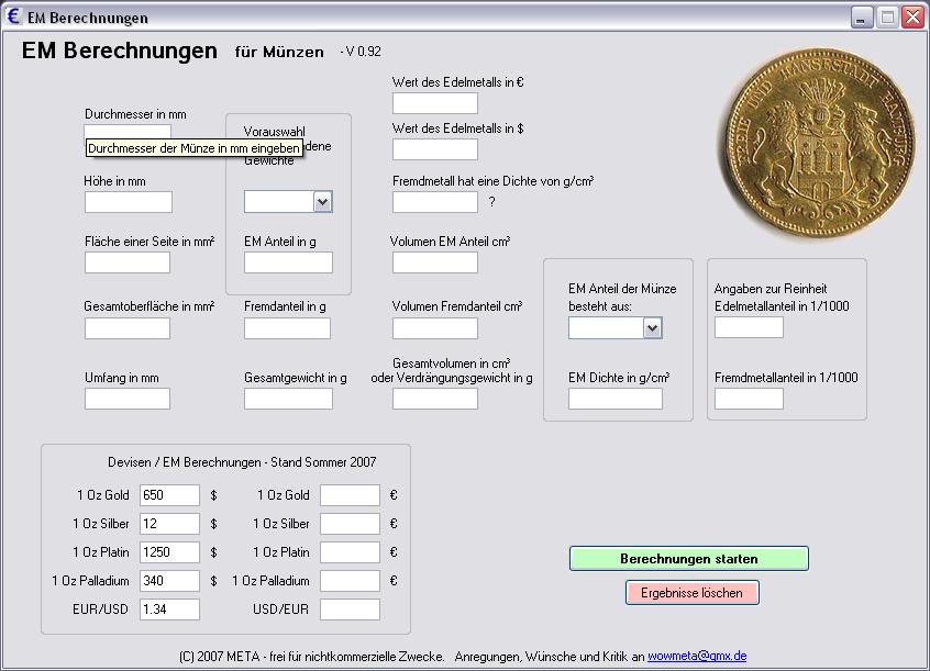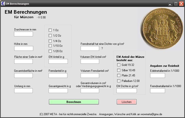 Habe das Thema Münze und alles was an phys. Daten dazugehört versucht in ein Programm zu packen.
