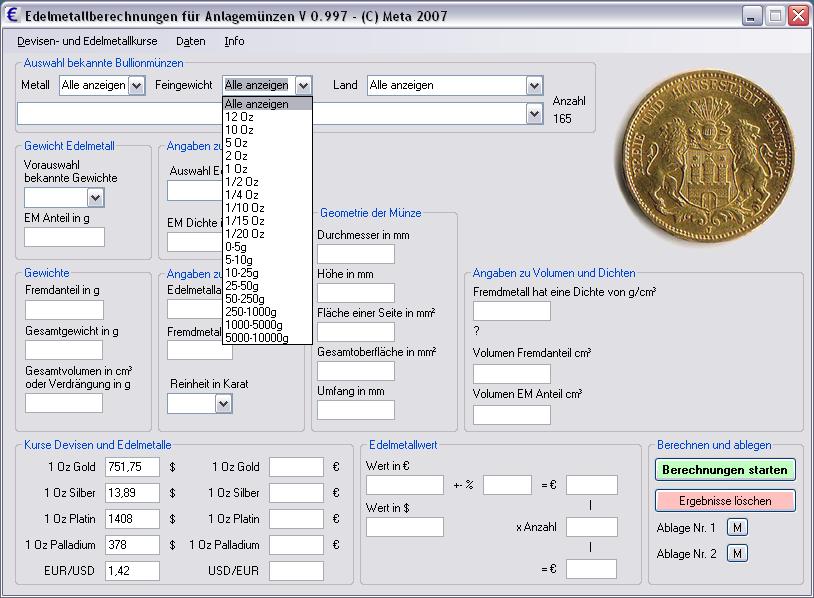 Änderung: Die Auswahl der Feingewicht wurde "zusammengerafft", in der letzten Version wurden alle Gewicht die in der Datenbasis vorhanden sind aufgezählt. Jetzt sind es nur noch die bekannten Oz Gewichte und einige Abstufungen in g.