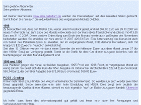 Auch möchte ich eine Linkliste in diese Broschüre aufnehmen, die auf Internetseiten verweist, die sich mit Pd Emus beschäftigen. In diesem Zusammenhang soll auch eine Liste von Münzhändlern entstehen, die Pd Emus anbieten.